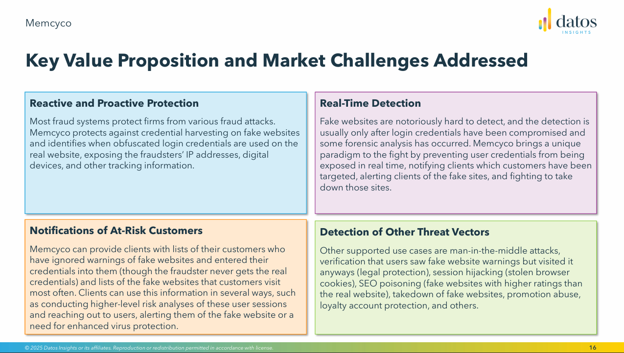 Against this backdrop, Memcyco’s recognition in the Datos Insights Q1 2025 Fintech Spotlight Report is more than an accolade, it’s a signal that authority industry analysts are proactively endorsing a pivot to a new kind of customer ATO defense—one built on pillars of preemptive real-time visibility, proactive protection and attack disruption.
