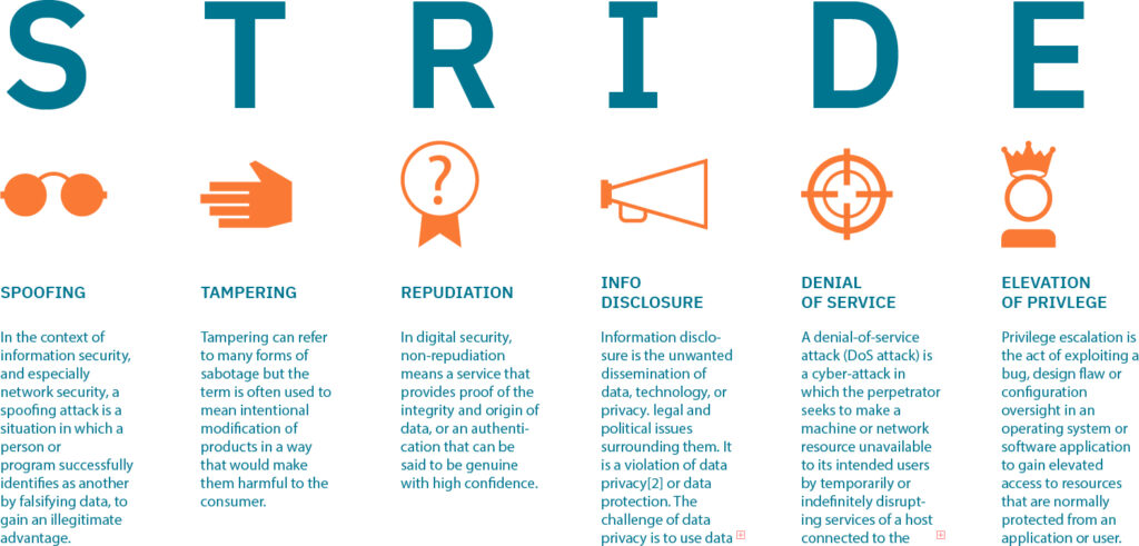 STRIDE is an acronym for the six types of threats it identifies: Spoofing, Tampering, Repudiation, Information Disclosure, Denial of Service, and Elevation of Privilege. This threat modeling methodology is easy to understand (therefore helpful for development-focused organizations new to threat modeling) and provides a structured approach to identifying threats and vulnerabilities in a software system.
